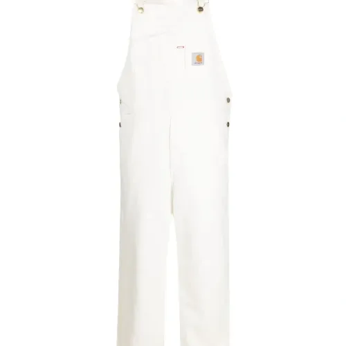 Белый, органический хлопок, нашивка с логотипом на груди, квадратный вырез, пуговичная застежка сбоку, четыре накладных кармана спереди, прорезной карман на груди и прямой крой.