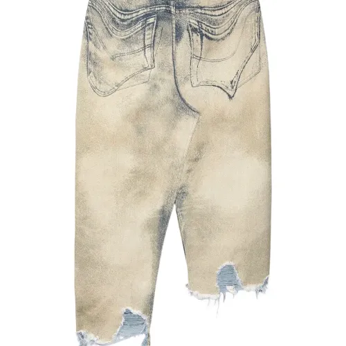 Джинсовая юбка асимметричного кроя с бахромой