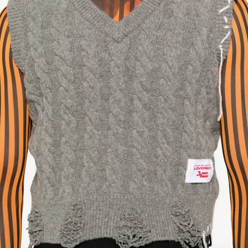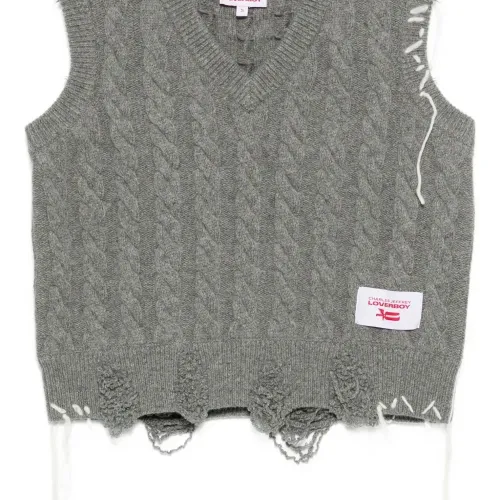 Кабельная вязаная кофта с эффектом потертости