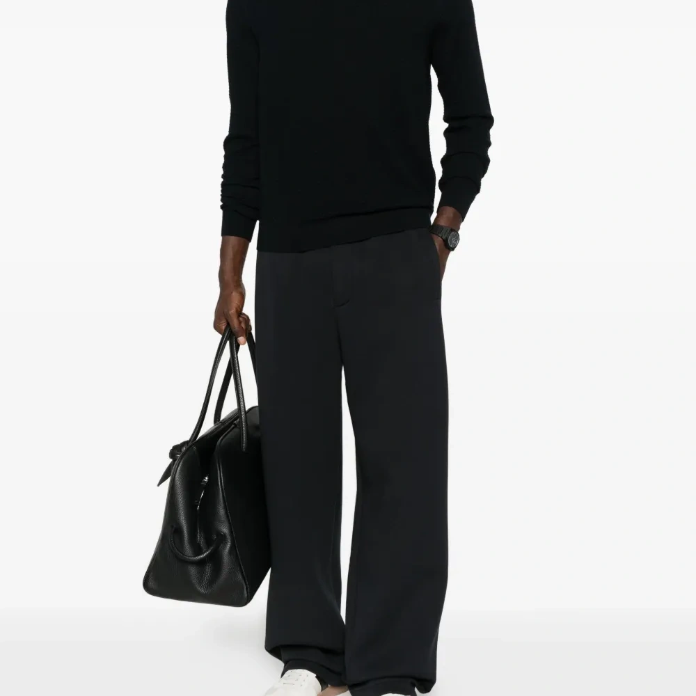 черный фактурная вязка круглый вырез длинные рукава прямой низ