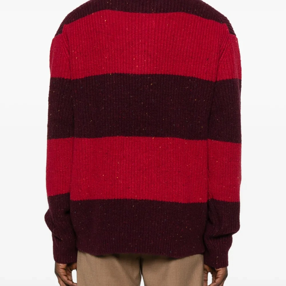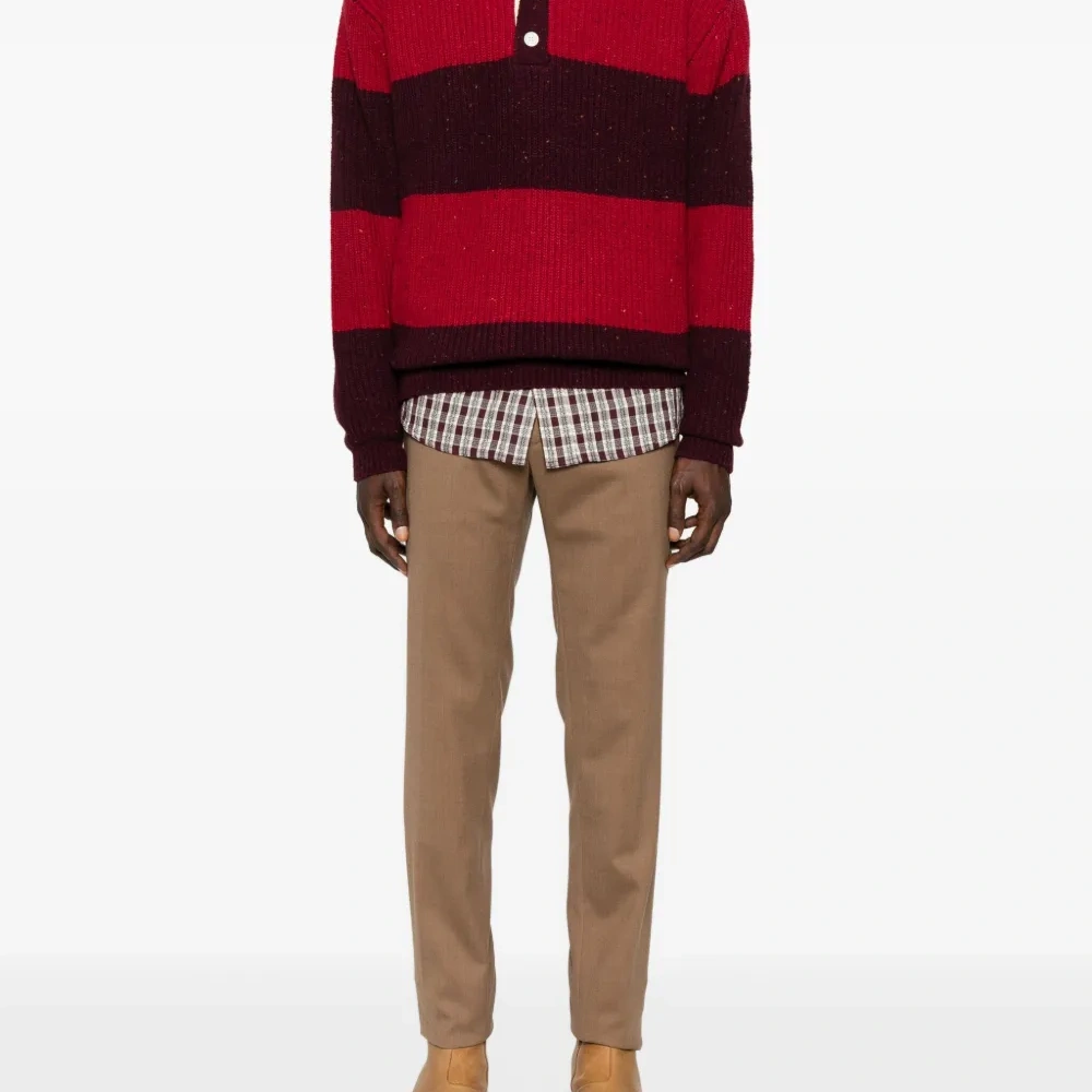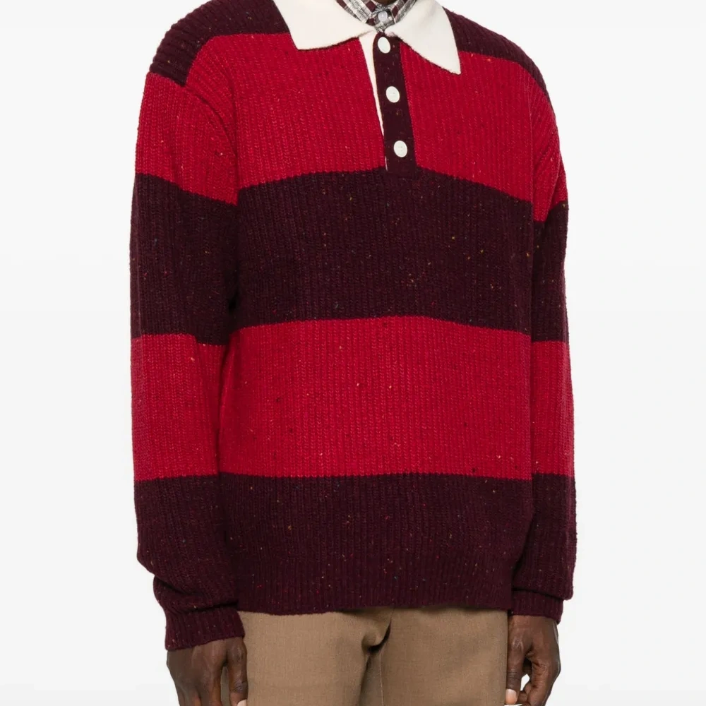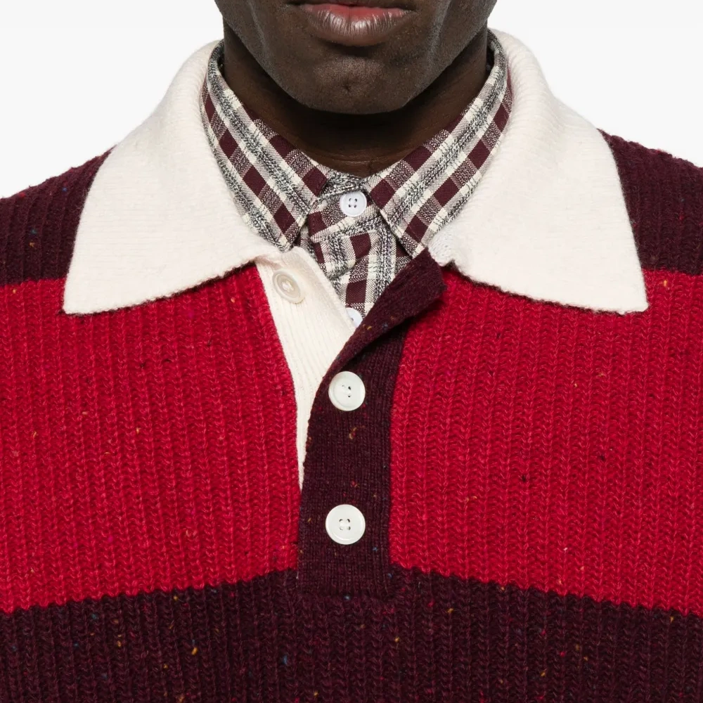 красный/бордовый горизонтальные полосы поло-воротник застежка на пуговицах спереди длинные рукава