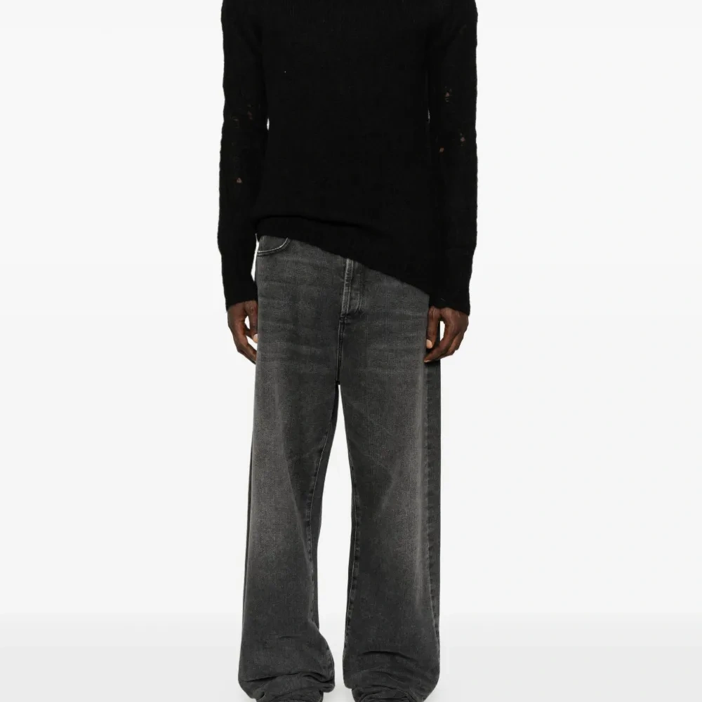 черный вязаный «косами» длинные рукава круглый вырез ребристые манжеты и низ