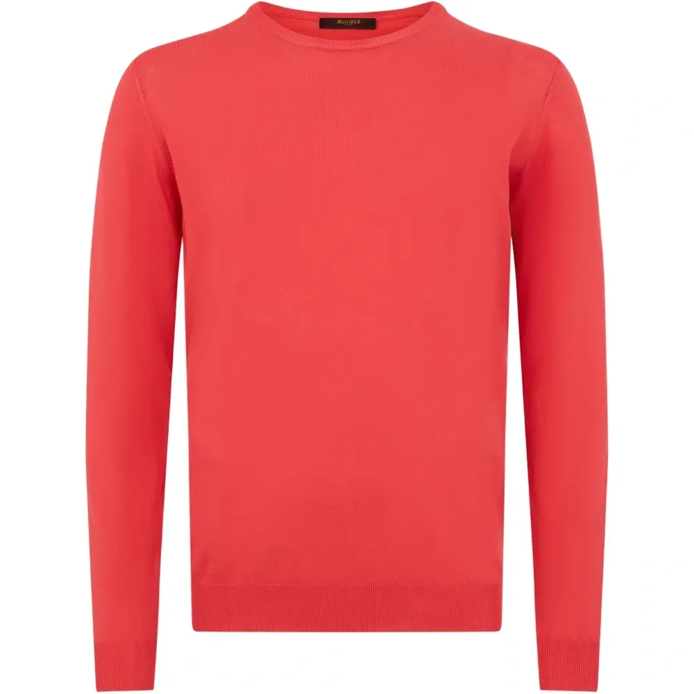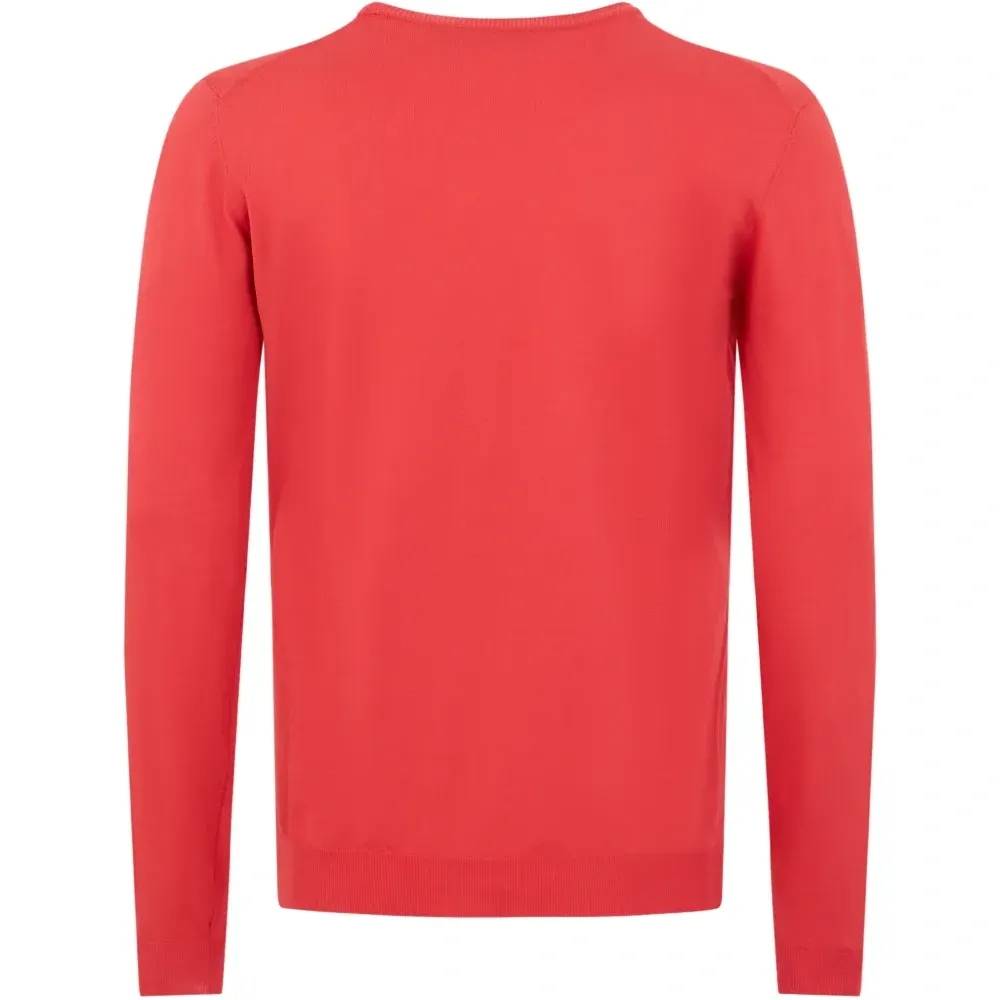 кораллово-красный джемпер с круглым вырезом, длинными рукавами, тонкой вязкой и ребристой отделкой