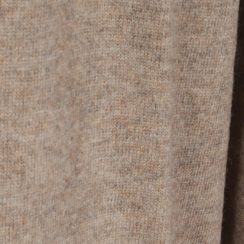бежевый джемпер с круглым вырезом, вязаный в рубчик, длинные рукава, манжеты и низ в рубчик