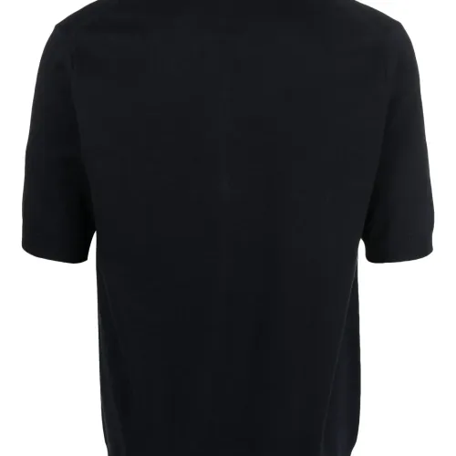 Черный, смесовый лен, трикотажный материал, V-образный вырез, классический воротник, короткие рукава и прямой подол. Этот товар как минимум на 50% состоит из материалов, которые признаны более безопасными для окружающей среды, и/или произведены с использованием методов, которые помогают сократить потребление воды и химических веществ. Узнать больше о том, какие товары получают отметку «Ответственный выбор», можно из материала «Как мы оцениваем экологичность и этичность».