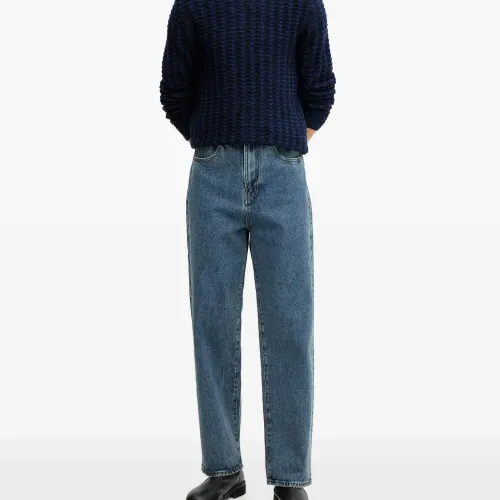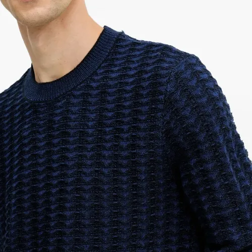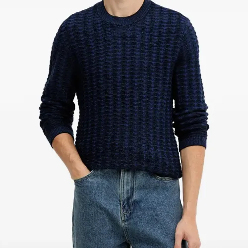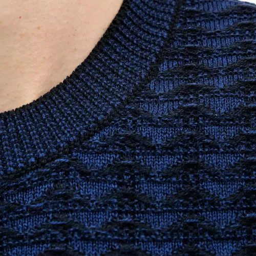 синий фактурный вязаный джемпер с круглым вырезом, длинными рукавами, ребристым низом и манжетами