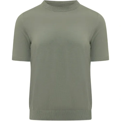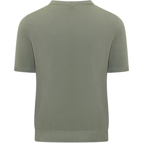 зеленый футболка с ребристым подолом и короткими рукавами, круглым вырезом