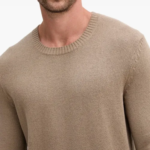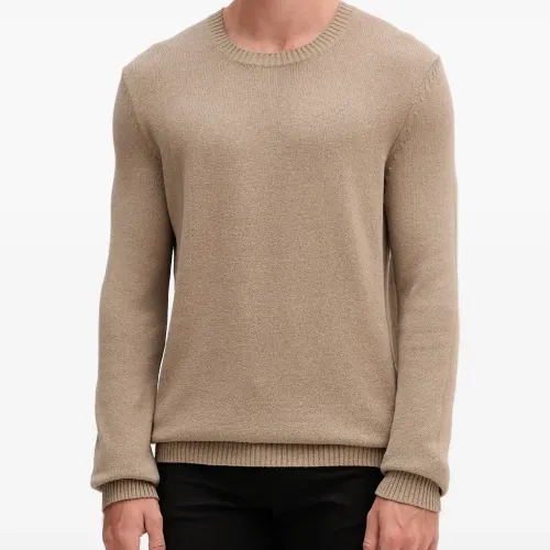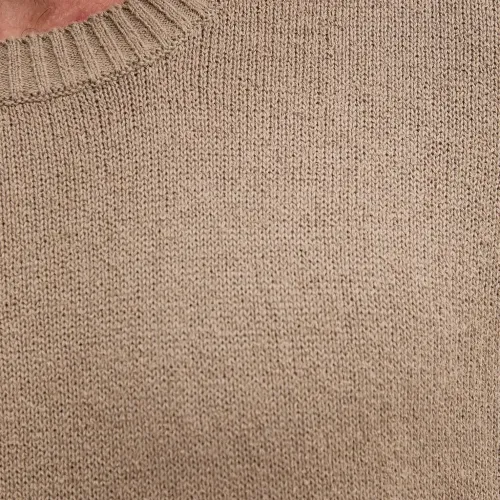 светло-коричневые ребристые манжеты, круглый вырез, длинные рукава