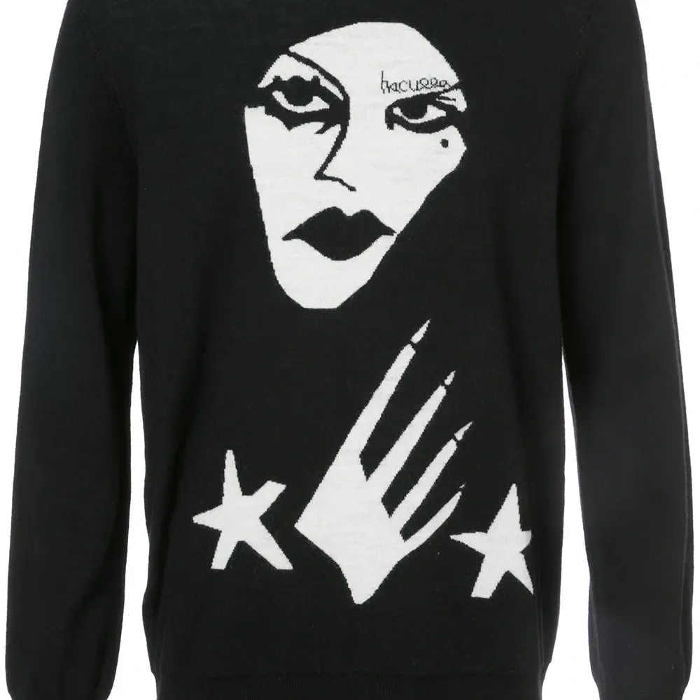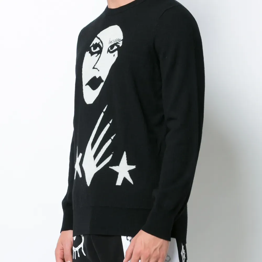 Черный с белым джемпер 'Witchslap ' из мериносовой шерсти от Haculla.