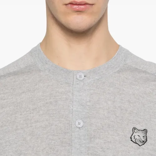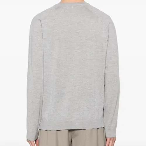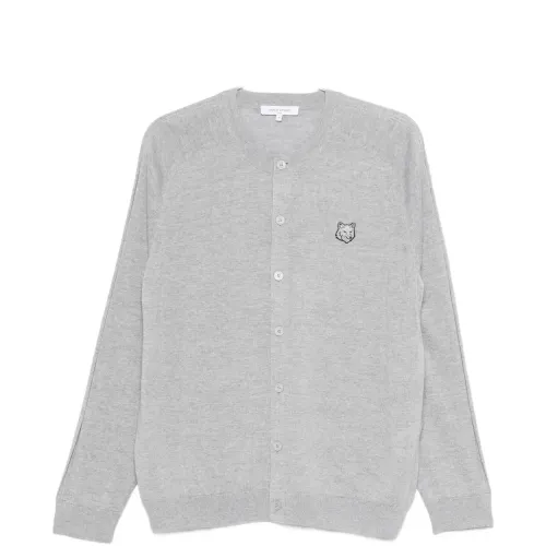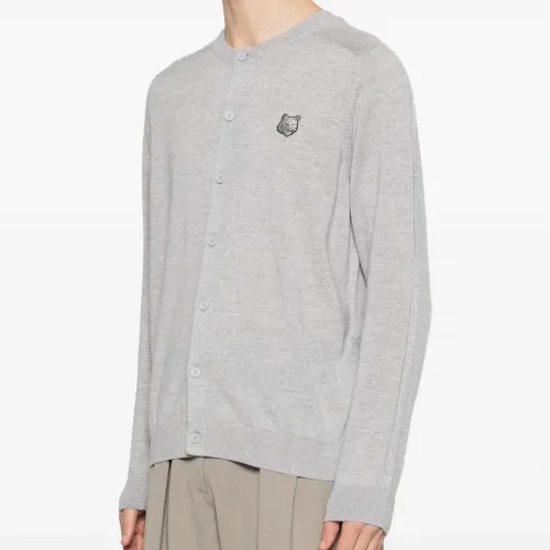 серый кардиган с логотипом, застежкой на пуговицы, круглым вырезом и длинными рукавами