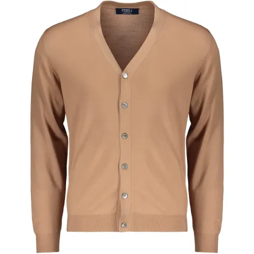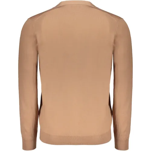 коричневый кардиган из чистой шерсти с V-образным вырезом, застёжкой на пуговицы и длинными рукавами