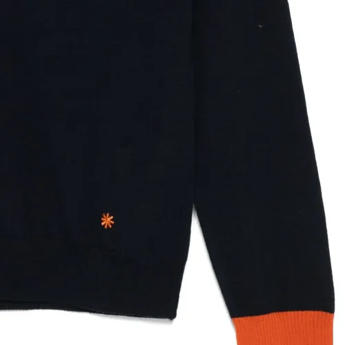 темно-синий V-образный вырез застежка на пуговицы длинные рукава манжеты в рубчик вышитая отделка