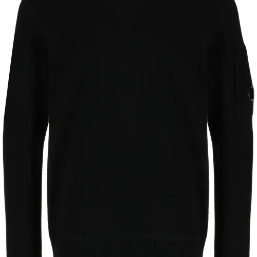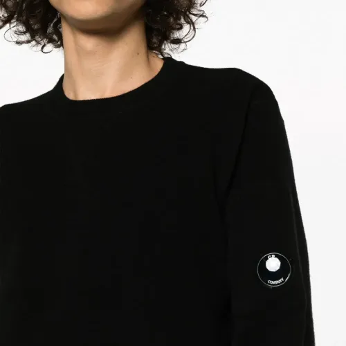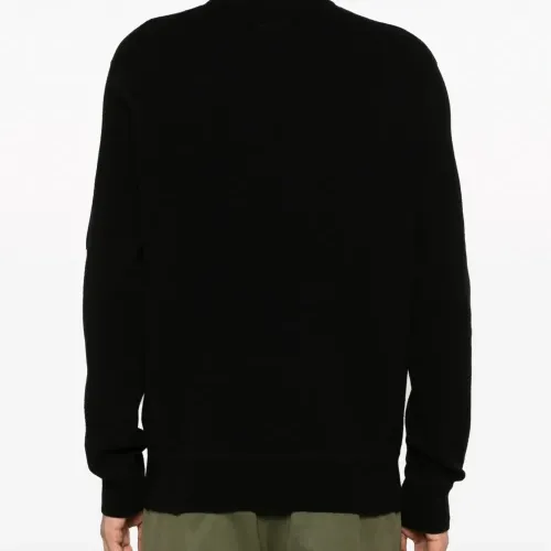 Черный, смесовая шерсть, трикотажный материал, вязаные края в рубчик, декоративная линза, круглый вырез, длинные рукава и прямой подол. C.P. Company рекомендуют снимать все отстегивающиеся аксессуары перед стиркой.