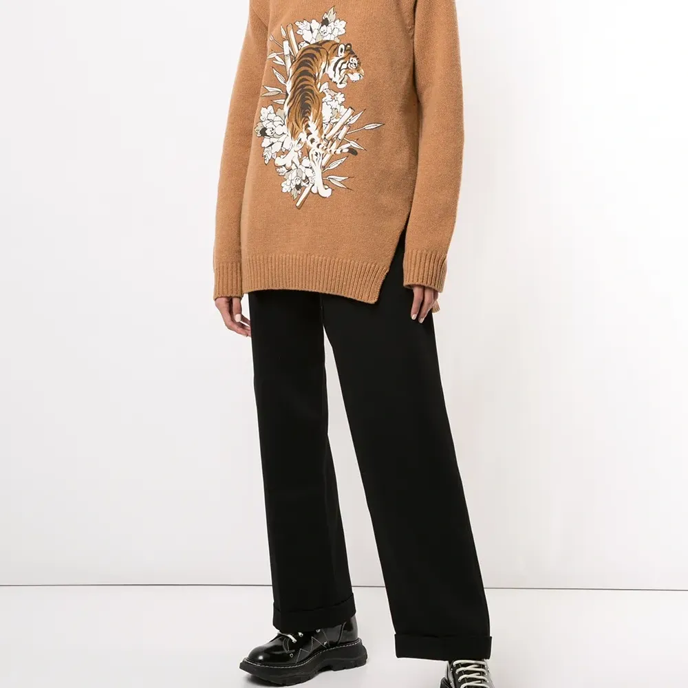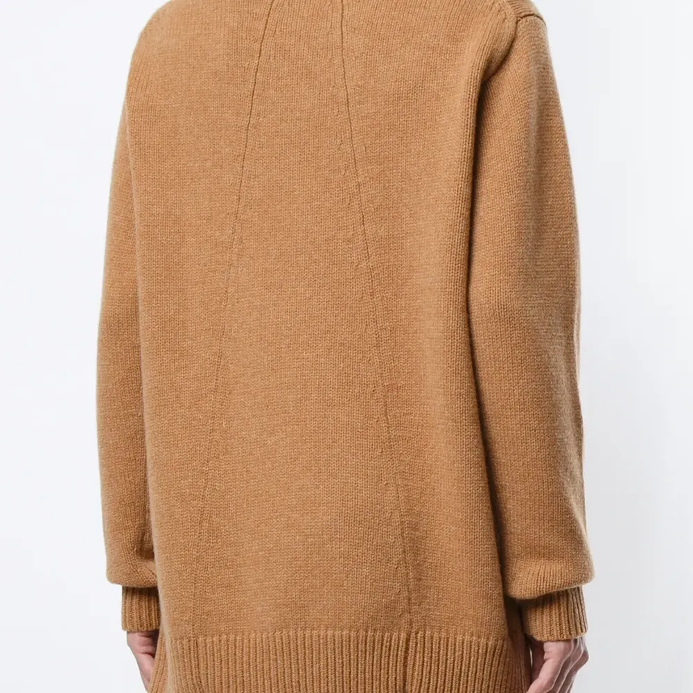 Круглый вырез, длинные рукава, манжеты в рубчик и эластичный подол.