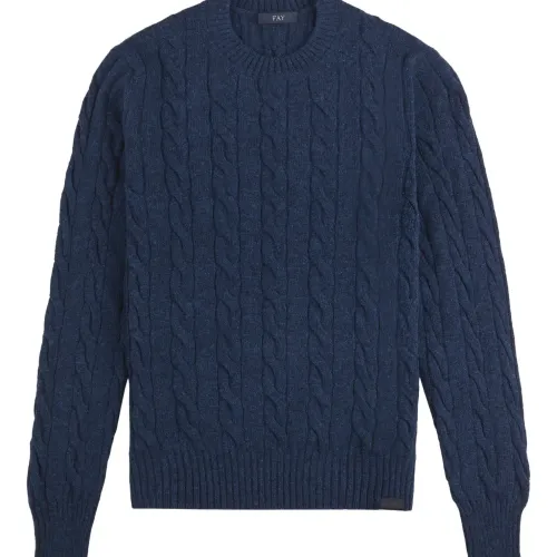 Свитер с плетёным узором и круглым вырезом