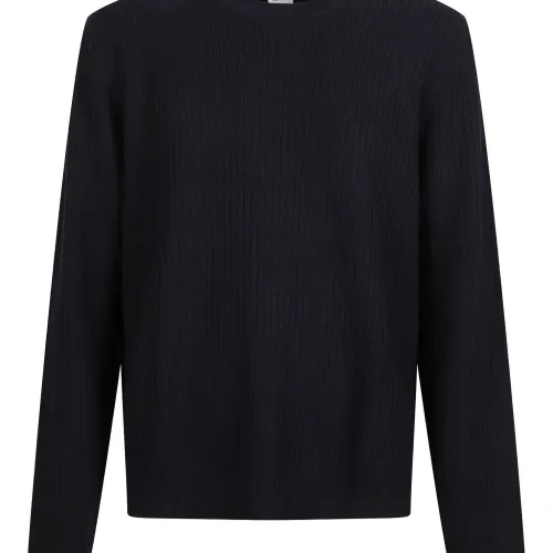 синий в рубчик трикотаж с круглым вырезом и длинными рукавами