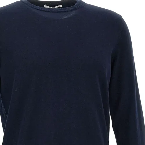темно-синяя хлопковая кофта с круглым вырезом, ребристым низом, контрастной нашивкой и длинными рукавами