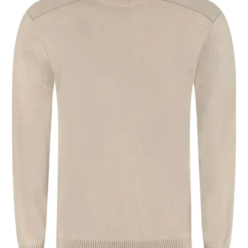 бежевый кожаные вставки на плечах круглый вырез рубчатый низ длинные рукава