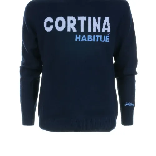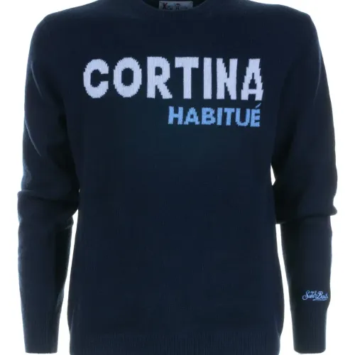 темно-синий круглый вырез длинные рукава интарсия с текстовым мотивом ребристый край ребристые манжеты