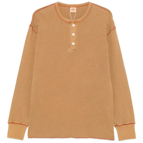 Вафельный свитер с планкой на пуговицах