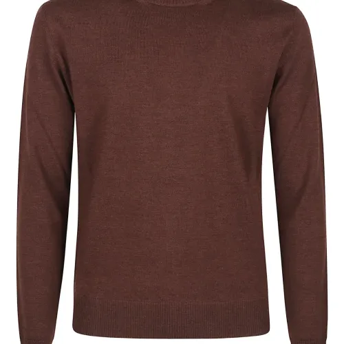 коричневый шерсть мериноса круглый вырез длинные рукава манжеты и нижний край в рубчик