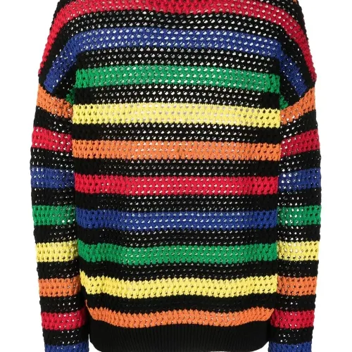 Черный/разноцветный, хлопок, кроше, принт в горизонтальную полоску, круглый вырез и длинные рукава.