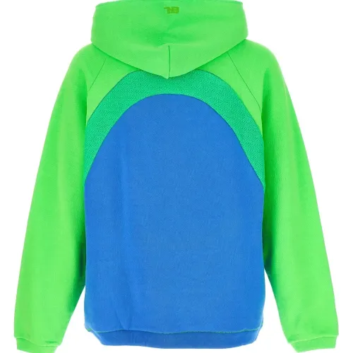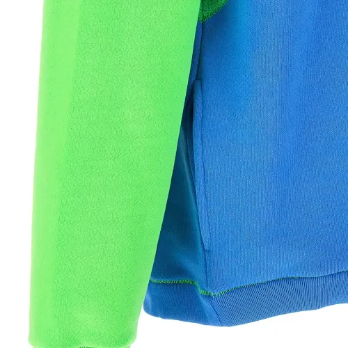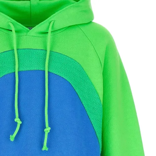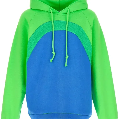 Неоново-зеленый, синий, хлопок, логотип на капюшоне, узор с разноцветными полосками, затягивающийся на шнурок капюшон, длинные рукава и прямой подол.