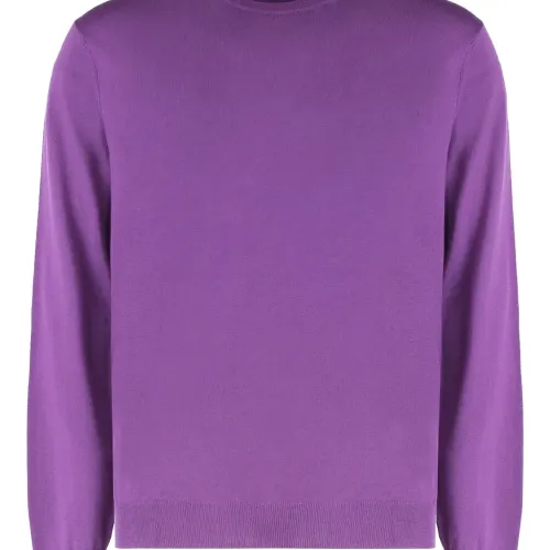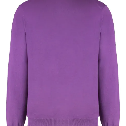 фиолетовый длинные рукава круглый вырез смесь шерсти рубчатый край