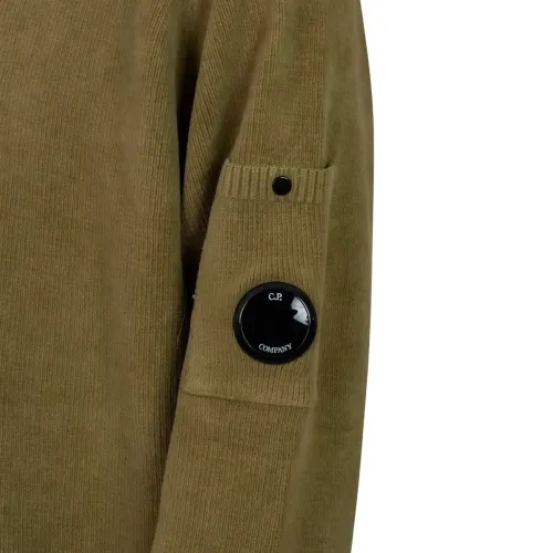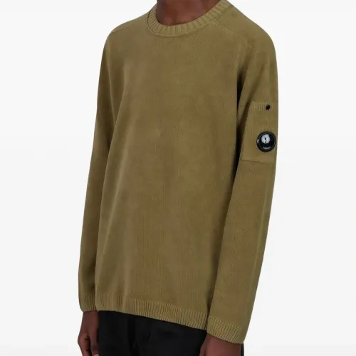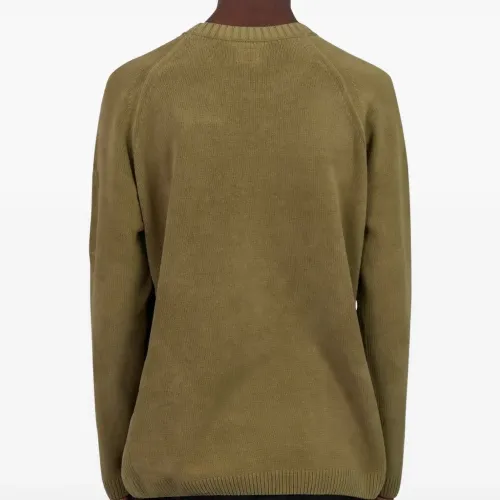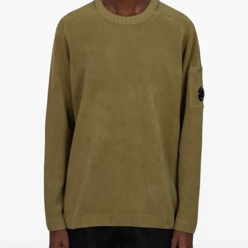 вязаный свитер из шенилла цвета сухих трав с круглым вырезом и нашивкой с логотипом
