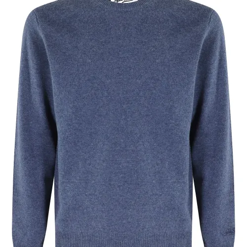 синий свитер с круглым вырезом, ребристым низом и манжетами