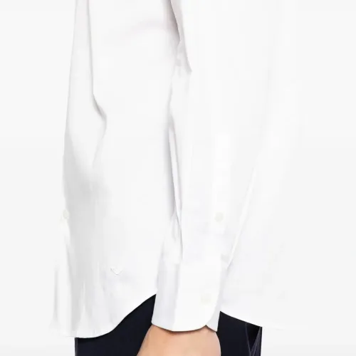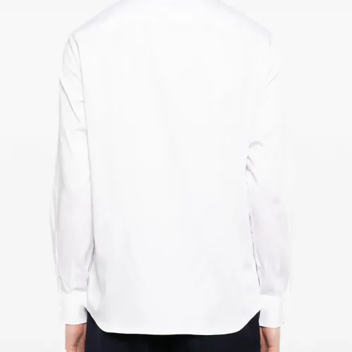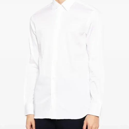 белая рубашка с застежкой на пуговицы спереди, длинными рукавами и манжетами на пуговицах