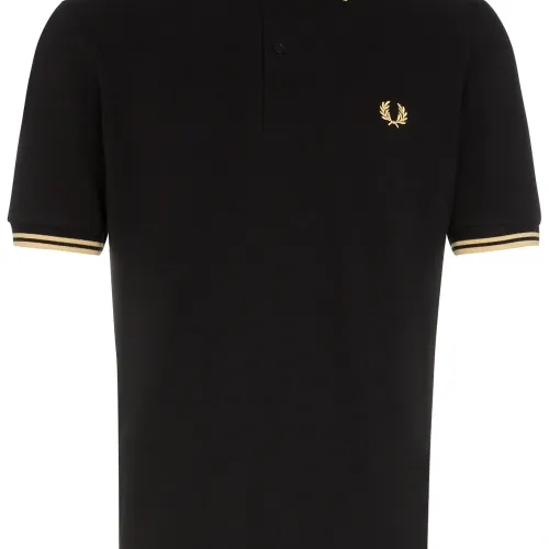 Рубашка-поло с отделкой в полоску от Fred Perry. Косой воротник и застежка на пуговицы.