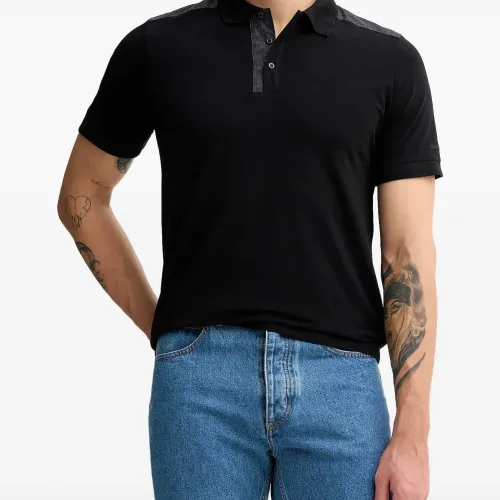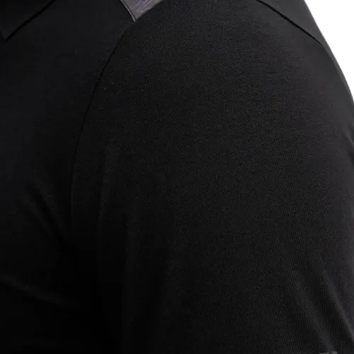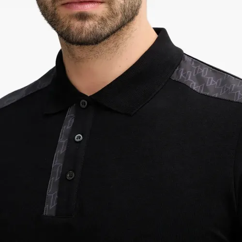 черная рубашка-поло с панельным дизайном, деталями с логотипом, застежкой на пуговицы, короткими рукавами и воротником поло