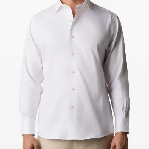 белая рубашка с застежкой на пуговицы, воротником кент (английским воротником) и манжетами на пуговицах