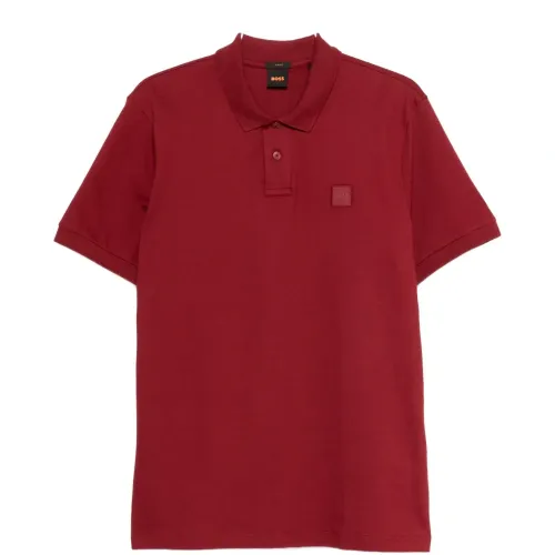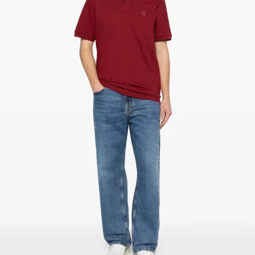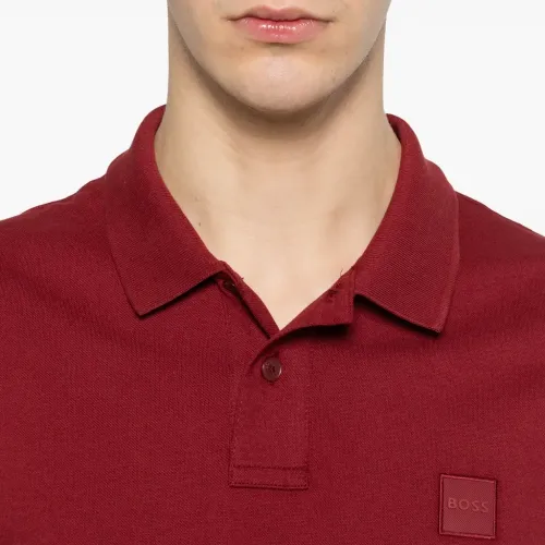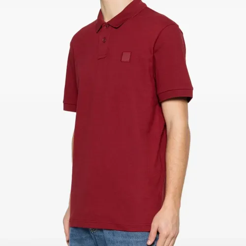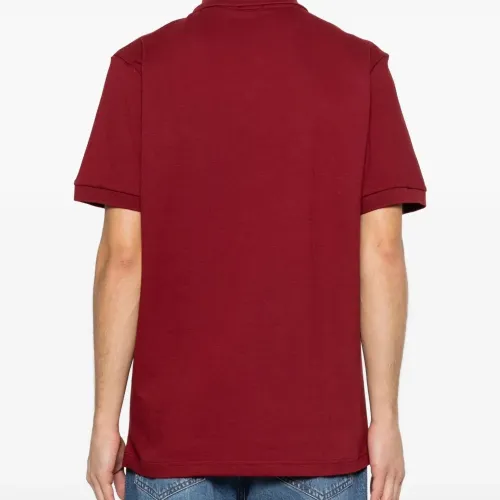 бургундское красное поло с нашивкой-логотипом, застежкой на пуговицы, короткими рукавами, воротником-поло и тональной строчкой