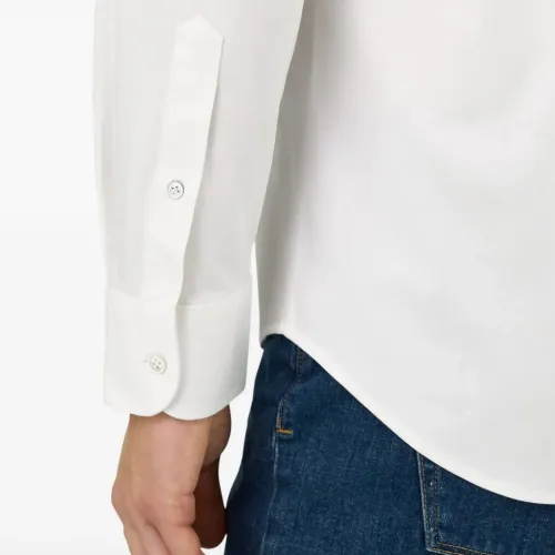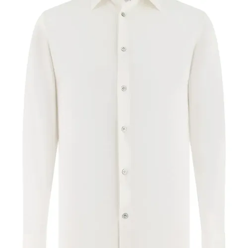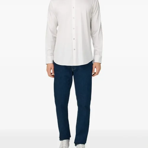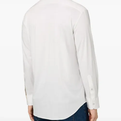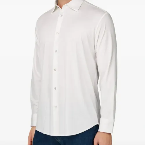 белая рубашка на пуговицах из перламутра, воротник "нью-йорк", длинные рукава, текстура "джерси"