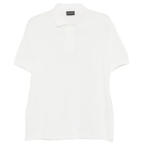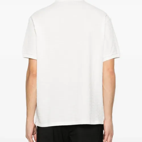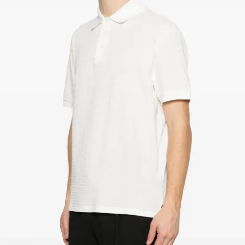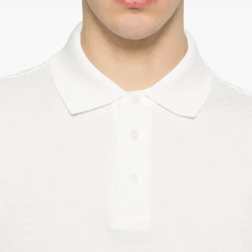 белая текстурированная рубашка-поло с короткими рукавами, воротником и застежкой на пуговицы