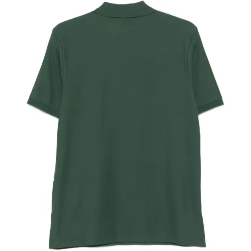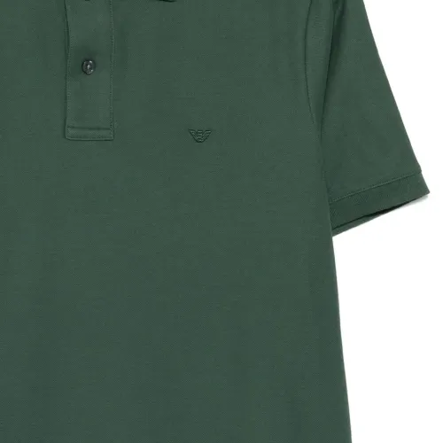зелёная хлопковая рубашка с логотипом, короткими рукавами, застёжкой на пуговицы и классическим воротником
