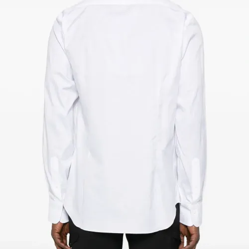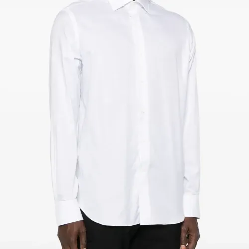 белый длинные рукава застежка на пуговицы спереди классический воротник закругленный подол манжеты на пуговицах