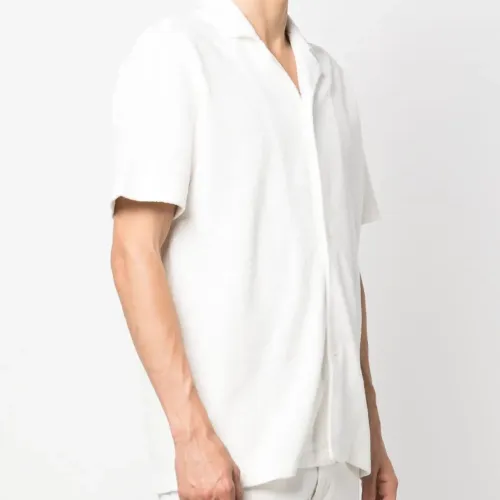 Молочно-белый, органический хлопок, отложный воротник, застежка на пуговицах спереди, короткие рукава и прямой подол. Узнать больше о том, какие товары получают отметку «Ответственный выбор», можно из материала «Как мы оцениваем экологичность и этичность».