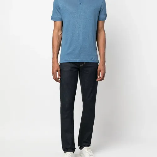 Кобальтово-синий, смесовый лен, фактурная поверхность, логотип в тон, вышитые края, отложной воротник, планка на пуговицах спереди, короткие рукава и прямой подол. Этот товар как минимум на 50% состоит из материалов, которые признаны более безопасными для окружающей среды, и/или произведены с использованием методов, которые помогают сократить потребление воды и химических веществ. Узнать больше о том, какие товары получают отметку «Ответственный выбор», можно из материала «Как мы оцениваем экологичность и этичность».