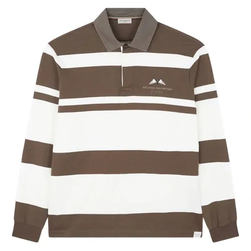 хлопковая футболка-поло с длинными рукавами, горизонтальными полосами в оттенках off-white и коричневого, вышитым логотипом