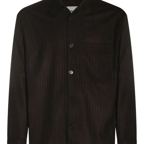 темно-коричневый в полоску (вырезка) застежка на пуговицы спереди длинные рукава нагрудный накладной карман