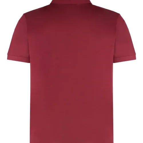 красная рубашка с вышитым логотипом, классическим воротником и планкой на пуговицах, короткий рукав
