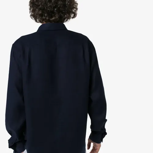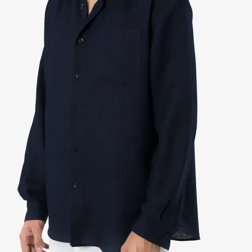 Рубашка Caroubis от Vilebrequin. Классический воротник, застежка на пуговицах спереди, нагрудный карман, свободный крой, закругленный подол, длинные рукава и манжеты на пуговицах. Цвет: синий. POSITIVELY CONSCIOUS: Как минимум 50% основного материала, из которого сделан этот товар, отвечает нашим критериям экологичности. В состав входят органические или переработанные материалы и ткани, которые признаны более экологичными (лен, рами, тенсел и т.д.)