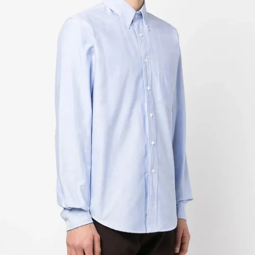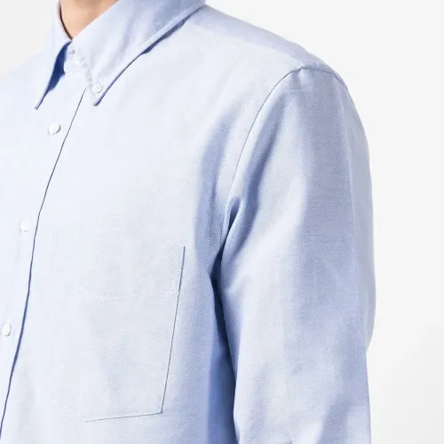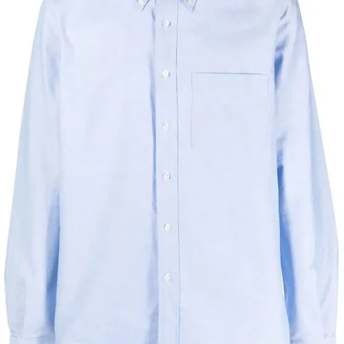 Голубой, хлопок, нагрудный накладной карман, классический воротник, застежка на пуговицах спереди и длинные рукава.