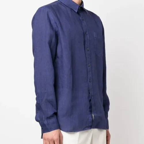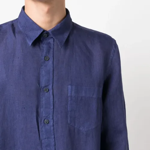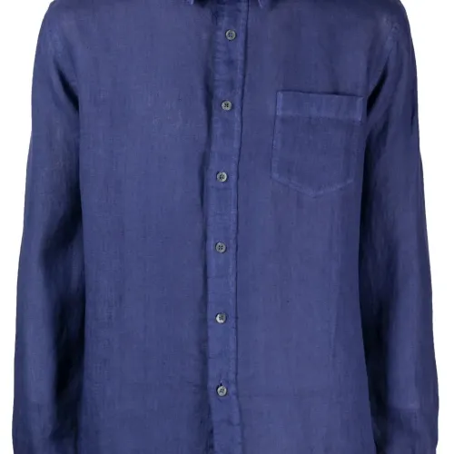 Синий, лен, классический воротник, застежка на пуговицах спереди, нагрудный накладной карман, длинные рукава и закругленный подол. Этот товар как минимум на 50% состоит из материалов, которые признаны более безопасными для окружающей среды, и/или произведены с использованием методов, которые помогают сократить потребление воды и химических веществ. Узнать больше о том, какие товары получают отметку «Ответственный выбор», можно из материала «Как мы оцениваем экологичность и этичность».