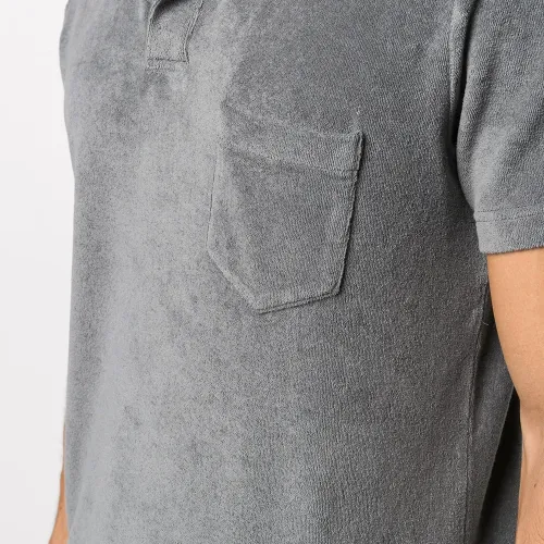 Рубашка-поло с короткими рукавами от Orlebar Brown. Классический воротник-поло, нагрудный карман и короткие рукава. Цвет: серый.