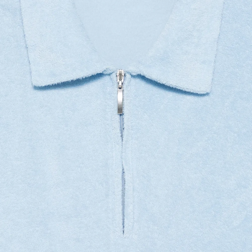 светло-голубой хлопок застежка на молнии до середины короткие рукава прямой низ