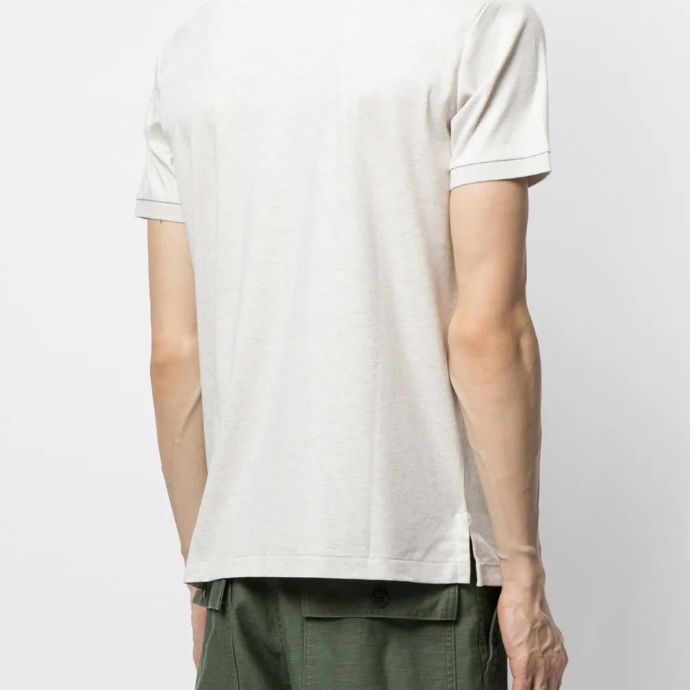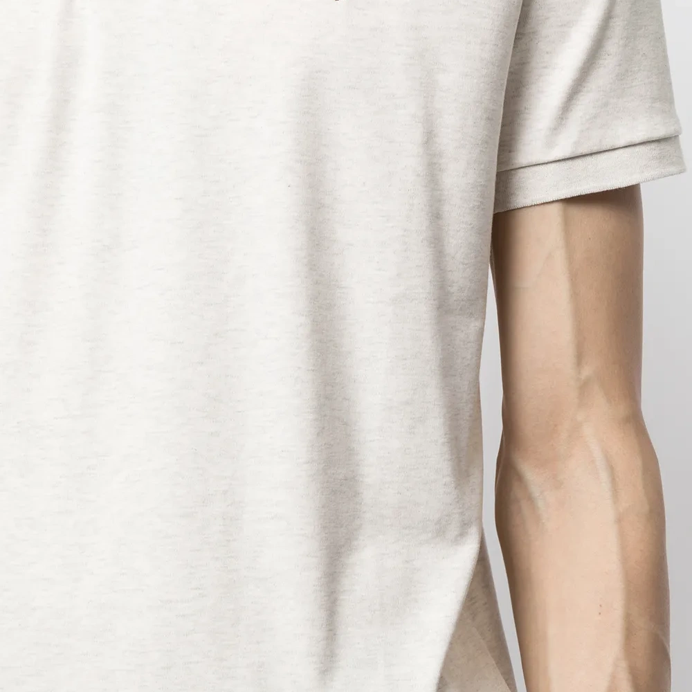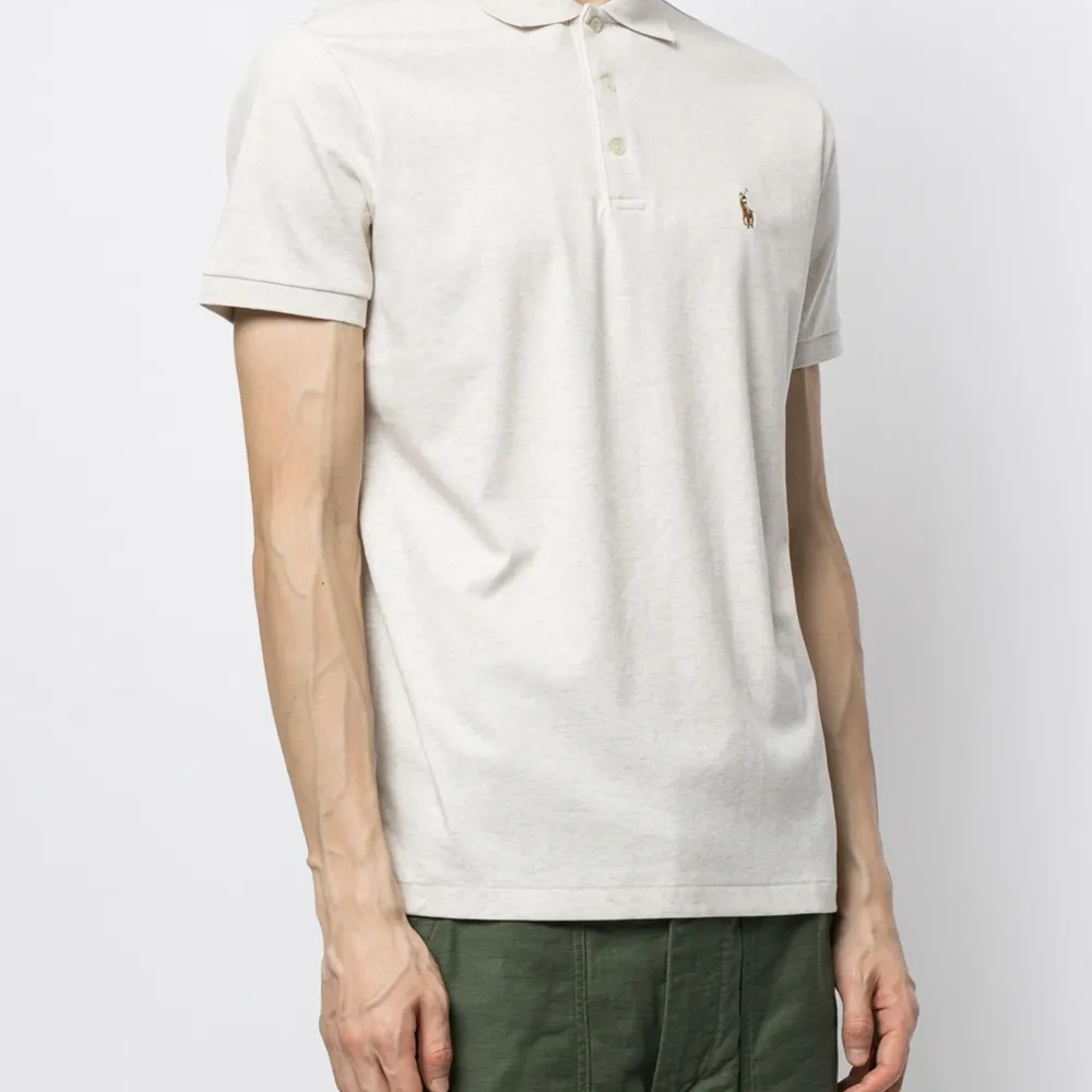 Воротник поло, вышитый логотип на груди, планка на пуговицах спереди, короткие рукава и прямой подол.